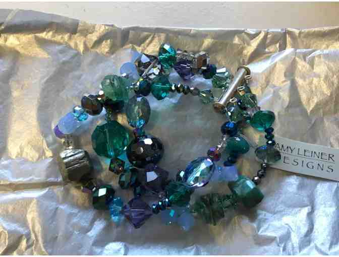 This Amy Leiner "Indiglo" 3-strand bracelet with semi-precious stones and crystals is truly one-of-a-kind and goes with everything from your favorite comfy pair of jeans to a dressier ensemble. You're sure to get lots of mileage out of this beautiful pieces -- and lots of compliments!
