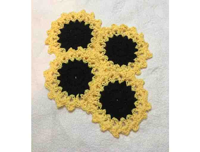 Crocheted Sunflower Coasters (4)
