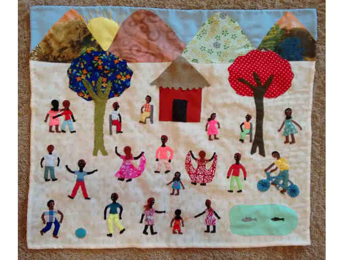 This hand-sewn 21"x24" quilted village scene is named "Threads of Healing." Also included is a copy of A Common Place, Fall 2010 MCC's magazine, detailing the "Threads of Healing" MCC project in Colombia.