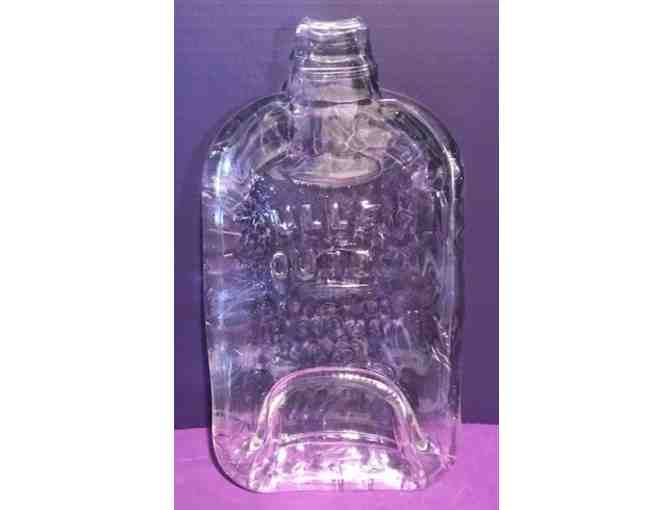 A 1.75 L Bulleit Bourbon Slumped Glass - Great for Appetizers and/or a Cheese Plate. Measures 11 1/2" by 6 1/2". Slumping is a technique in which items are made in a kiln by means of shaping glass over molds at high temperatures.