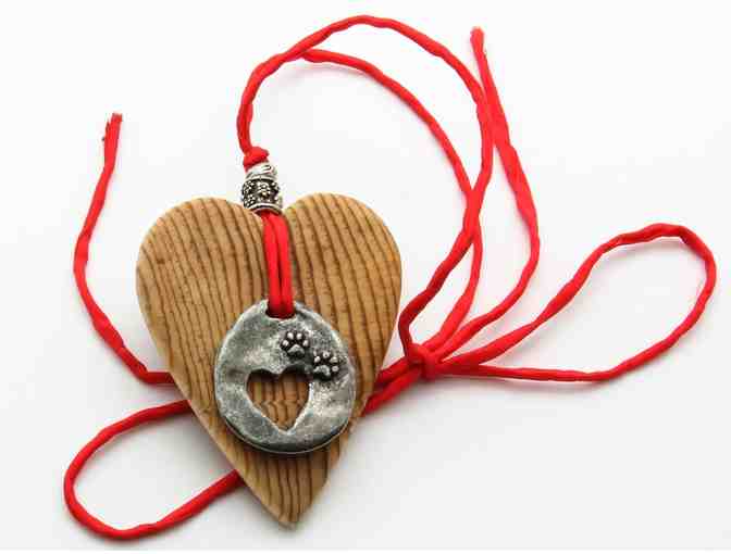 Large wooden heart with pawprints/heart charm - made from "Harley's Tree Stump"