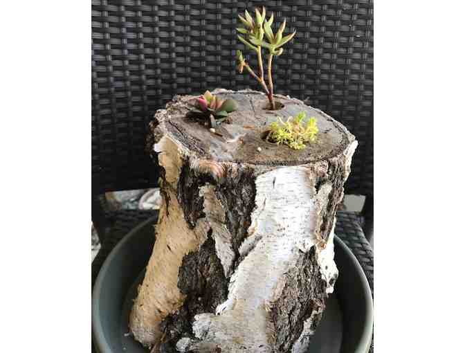 This birchwood planter with succulents planted in drilled holes would look perfect in your home or in your garden.