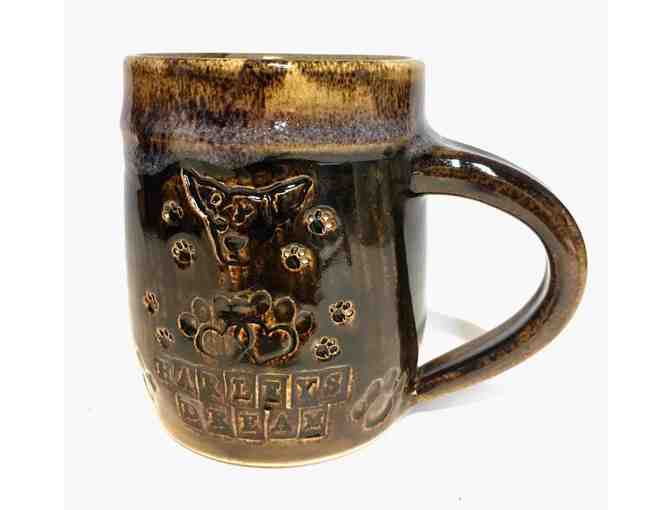 Beautiful, artisan crafted Harley's Dream beverage mug. Approximately 12oz or slightly larger. Microwave and food safe. What better way to start your day than knowing you're supporting Harley's Dream?