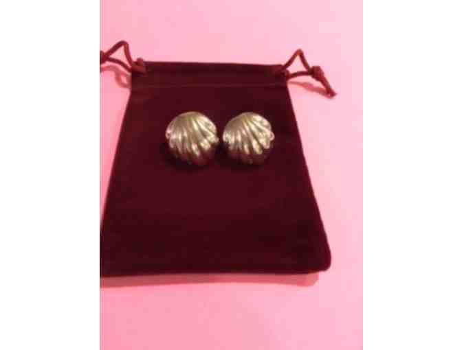 Sterling Silver Clam Shell Pierced Earrings - have a clam shell design. The size are round, 1 3/4" by 3/4". They are marked "ND 925" on the back of one of the earrings.  The earrings weight 12 grams.