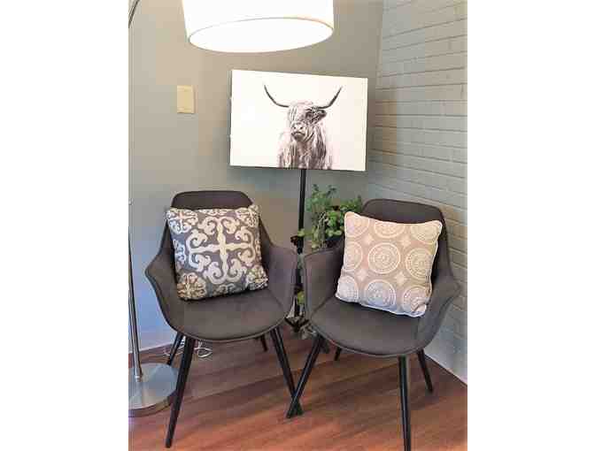 Two throw pillows gifted by Carpet Plus to beautify any room in your home.