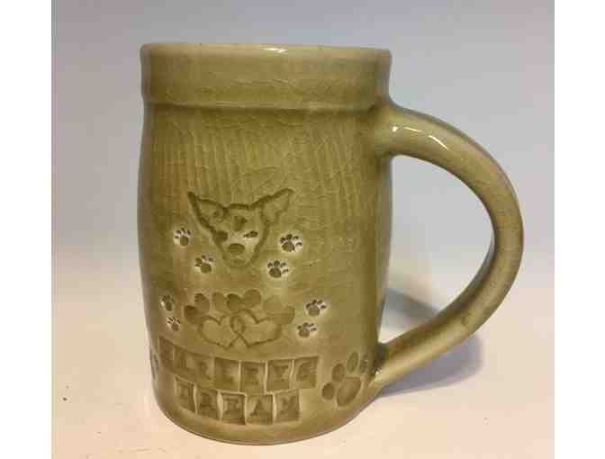 Handmade stoneware Harley's Dream paw print mug by John Burke.