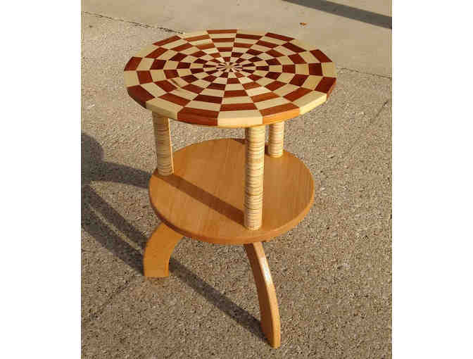 Table: Hand-crafted wooden, segmented side table by Merv Swartzentruber