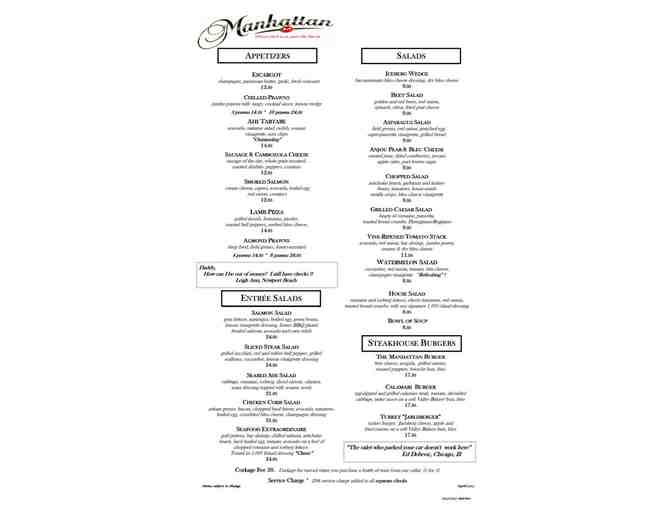 The Manhattan Steakhouse - two $50.00 Gift Certificates