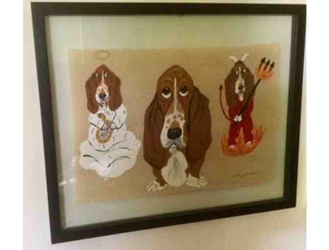 Framed Basset Original Folk Art - devil or angel?