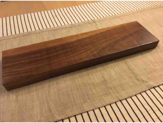 Use this striking display to raise your centerpiece to a new level! This piece is 21.5" x 5.0" x 1.25" with walnut and danish oil. Just imagine the Display with a row of candles with fresh flowers, shells or ever greens. Works for every season and all by itself.