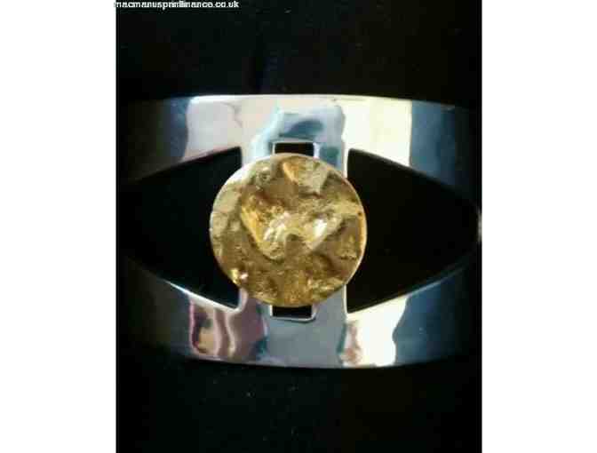 Rustic Cuff original design Golden Eye cuff in silver with gold accent.