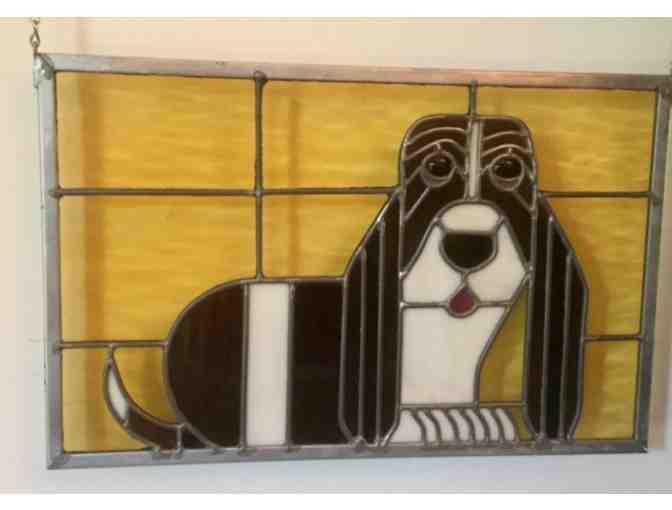 Handmade Stained Glass Basset Hound Panel