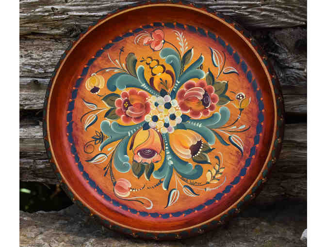 12"D. Signed by the artist. "Tele-Halling" is a combination of two traditional styles of rosemalingTelemark and Hallingdal. Artist: Barbara Wolter, Vesterheim Gold Medal rosemaler.