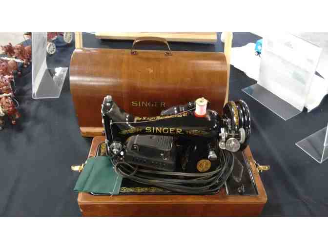 This old sewing machine, buildt in 1949 or 1929) is in perfect working order and beautiful condition. It has an electric activated peddle and a lovely wooden carrying case. This model is sought after by sewing machine collectors, hence its strong pricing.