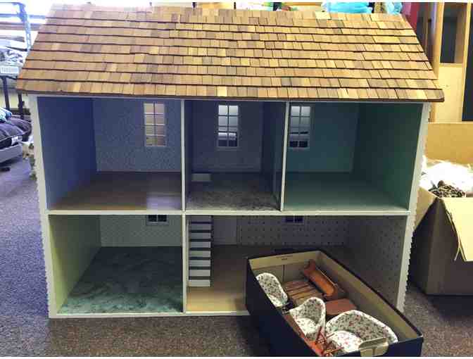 A hand-crafted, one-of-a-kind, seven room, old fashioned wooden dollhouse sure to delight any child -- or child at heart! Includes five windows with wooden shutters, a flight of stairs and a front door.