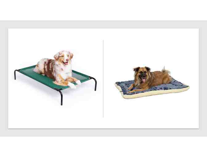 This lot conatins a Elevated Pet Bed Size Large and a Reversible Paw Print Fleece Dog. The things that you need to keep your dog resting in comfort!