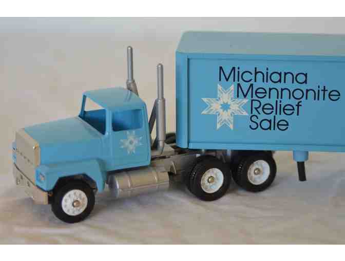 This truck commemorates the 25th anniversary of the Michiana Mennonite Relief Sale. It is blue, about 9" long, and is made by Winross. It is new, but it is is not in its original box.