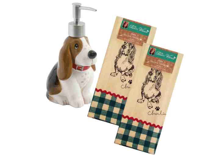 This lot contains the brand new fall 2017 line of Pioneer Woman's Charlie Soap Dispenser and 1 set of Charlie Tea Towels