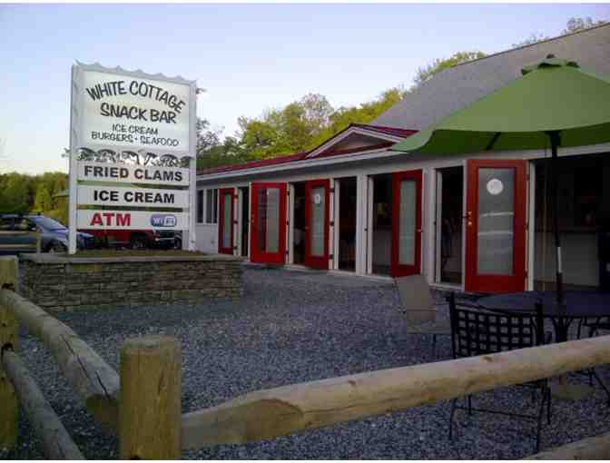 We are a traditional dairy bar and lots more! Located one mile west of town on Rt 4, we serve char broiled burgers, homemade onion rings, great sandwiches, fresh whole belly clams, Maine lobster salad rolls, fresh crisp salads and 30 flavors of ice cream. Our customers also enjoy steamed Maine lobster dinners on the weekends in the summer. Sit outside at one of our many picnic tables overlooking the Ottauquechee River (Moms bring the towels and bathing suits –the kids are going in!) At White Cottage, we’ve got something for everyone!