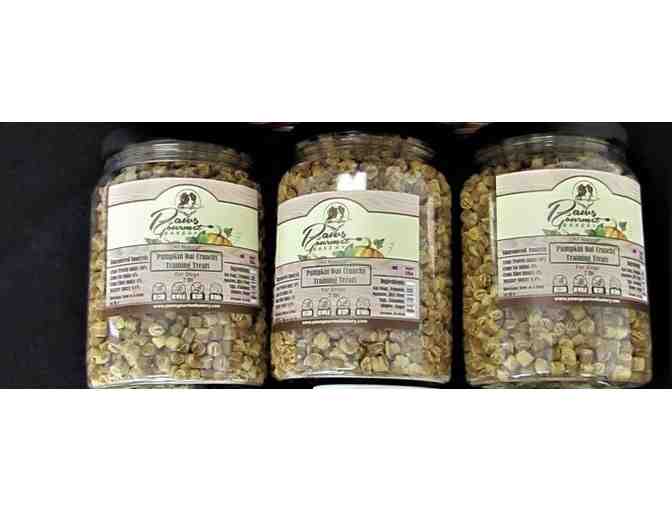 Entice your canine buddy with these amazing training treats! Three 2-pound jars of Pumpkin Oat Crunchy Training treats!