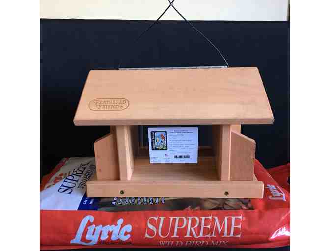 * Deluxe Feathered Friend Wood Bird Feeder With Two Suet Holders