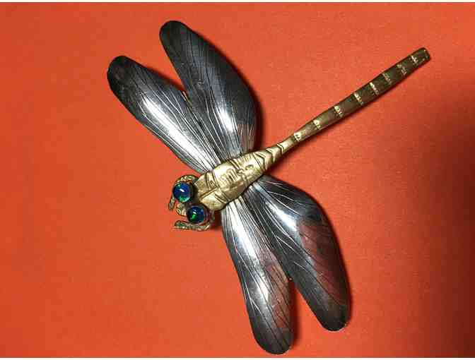This truly stunning artist-crafted sterling silver & mixed materials dragonfly pin will take your breath away. You'll have to look closely to make sure it isn't real -- and anyone who sees you wearing it is sure to do the same! Bid early and often to make sure you take this treasure home with you!