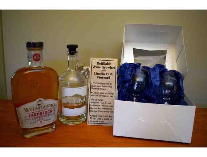 - Souvenir wine glasses, a wine tasting for 2, and a glass wine growler from Lincoln Peak Vineyard,