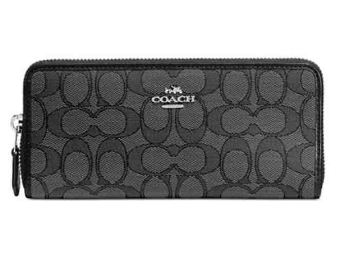 Applied signature hardware lends sophisticated shine to this lightweight design, while myriad pockets, compartments and an ID window allow for superb organization within. A contrast interior provides a surprise pop of color when you open the wallet.