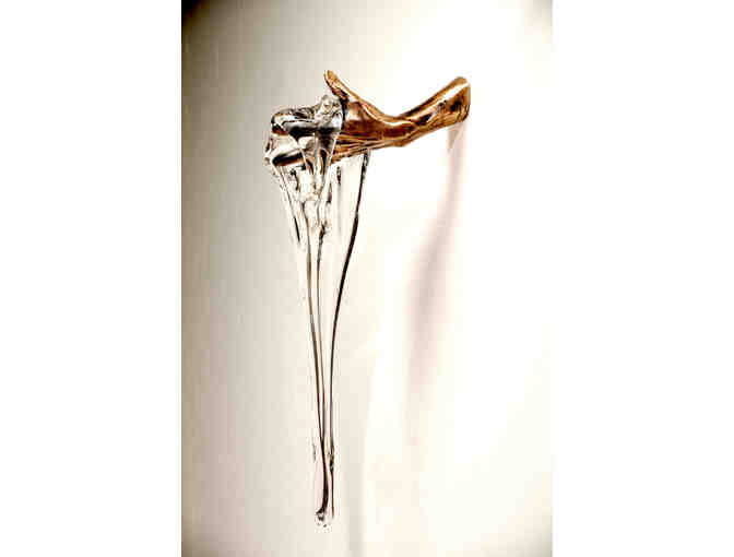 Cast bronze and glass. 28h x 7w x 13d. Wall piece.
