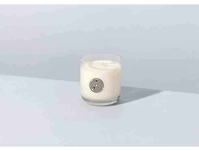 The WOOD CABIN Candle from Keap welcomes you to the cabin, where a warm fireplace awaits.