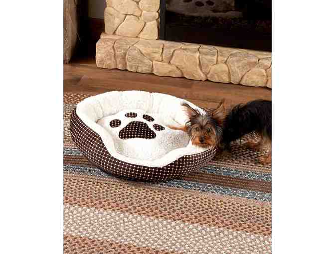 This Checkered Plaid Paw Print Lounger is just what your 4-legged friends need for a little rest and relaxation. It features an ultra-soft sherpa interior that keeps them cozy when they cuddle up for a nap. The bottom of the bed has nonskid beading that prevents shifting. Zip off the cover for easy washing. 20-1/2" dia. x 5"H. Polyester with polyfill. Cover, machine wash.