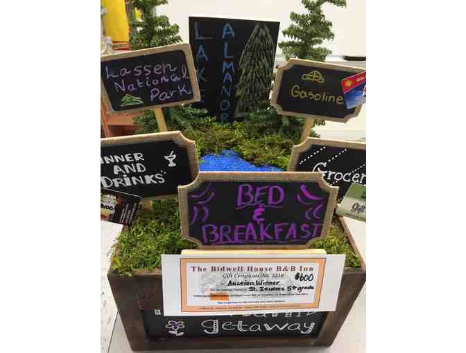 Escape the hustle and bustle of City life with this Mountain Getaway. Stay at the renowned Bidwell House B&B Inn in Chester, CA ($600 gift certificate). You can then hike in Lassen National Park (annual pass $40), get gas at the local Shell ($50 gift card), have dinner & drinks at the Red Onion Grill & Bar ($100 gift card) and pick up some drinks & snacks at the local Holiday Market ($50 gift card).
