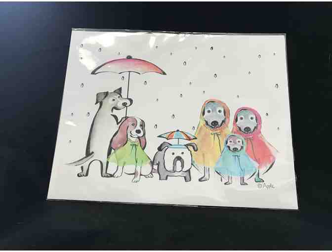 Colorful umbrellas, sprightly raincoats, and smiles all around... these dogs are PNW ready! Enjoy this 8.5 x 11 print by Apple Cox Designs.
