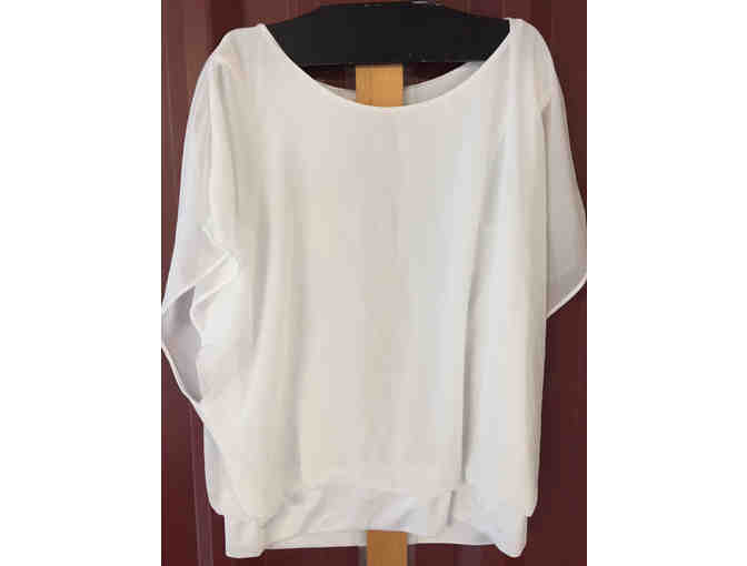 This white blouse can be taken from day to night with some updated accessories. Size large but runs small.