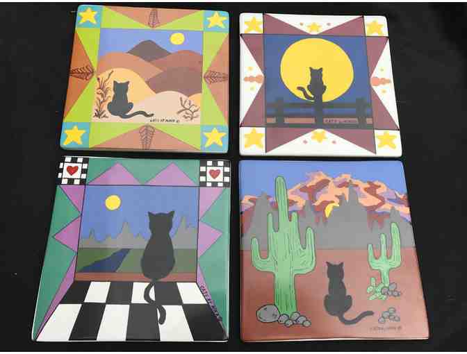 Enjoy these four, colorful, New Mexican Tiles. 6" by 6", they are perfect to display on a windowsill or shelf within your home!