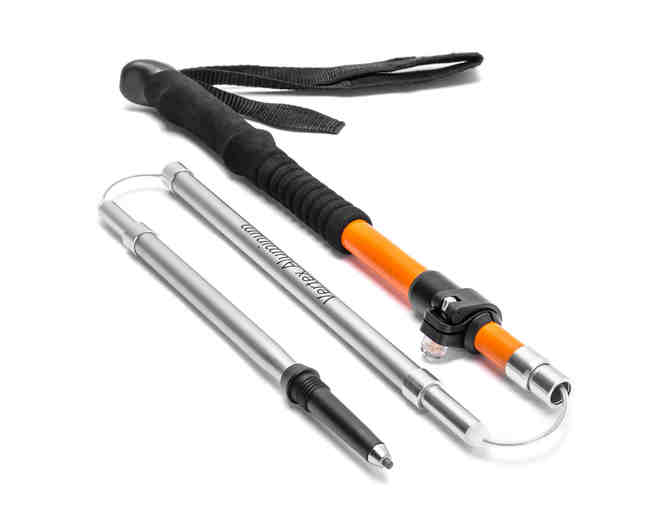 Durable and compact trekking poles, featuring 7075 aluminum construction, long grip handle and only 14.5 inches when collapsed.