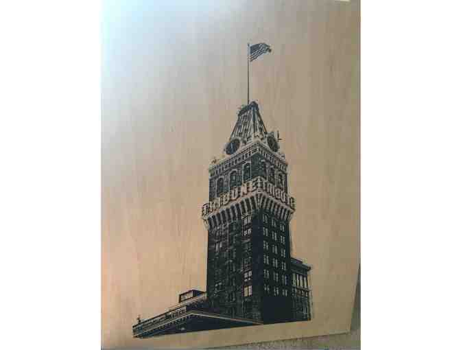 Historic Oakland Tribune newspaper tower, acrylic screenprint