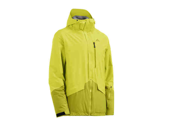 Aspen's own Strafe Outerwear provides this sharp and technical men's insulated jacket, size large, in sulphur spring/apple green.