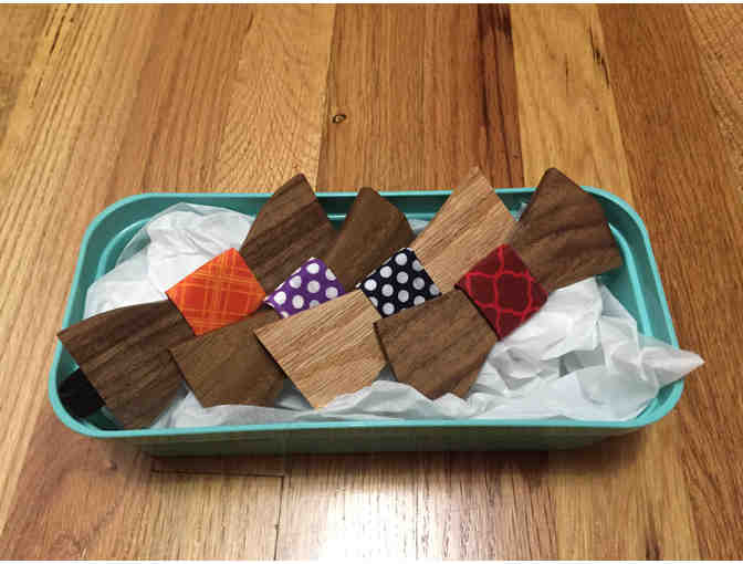 4 wooden bowties ready to put the perfect touch to any outfit! Made of Oak, Walnut and Poplar.