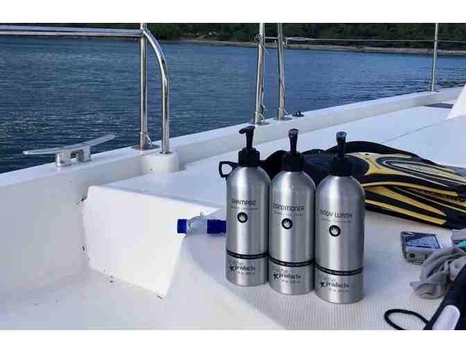 The winning bidder will recieve a 16 oz shampoo, conditioner & body wash, aluminum bottle and pump.