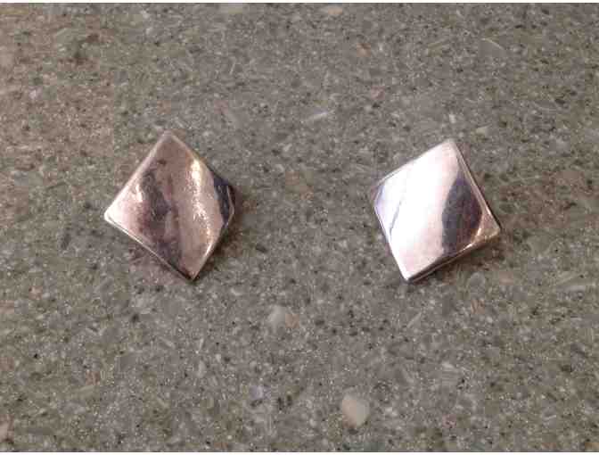 These lovely estate jewelry earrings will appeal to anyone of discriminating taste. Chrome with curved square shape, these earrings will compliment a variety of fashion looks.