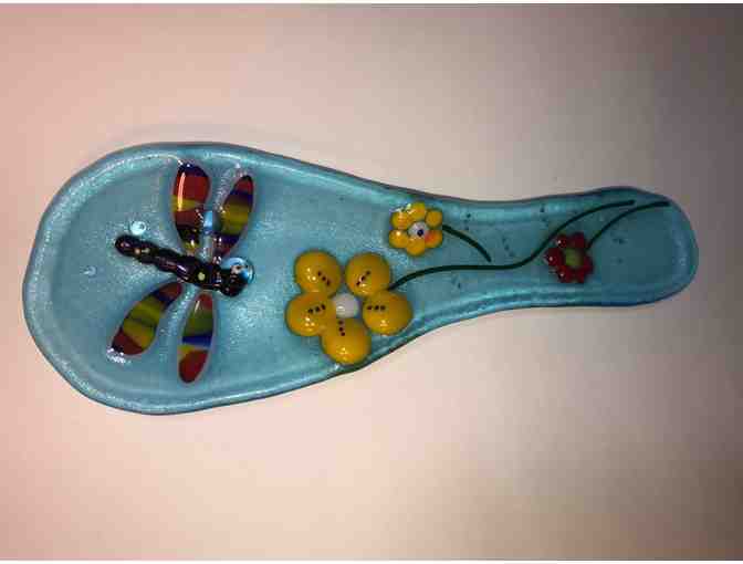 8" x 3" fused glass dragonfly spoon holder