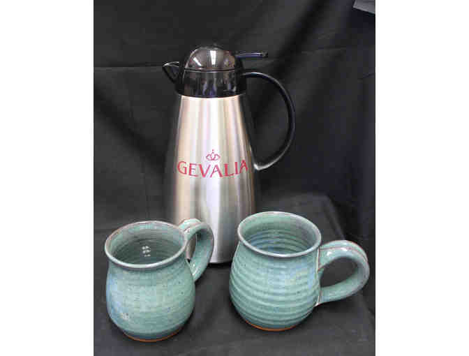 Gevalia Kaffe 1-Quart Thermal Coffee or Tea Server & Two Handmade Mugs