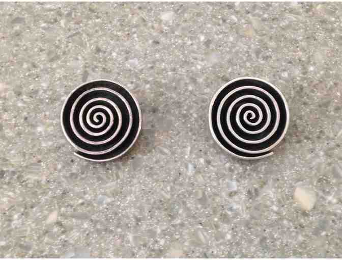 These lovely estate jewelry earrings will appeal to anyone of discriminating taste. Silver swirl with black inlay, these earrings will compliment a variety of fashion looks.
