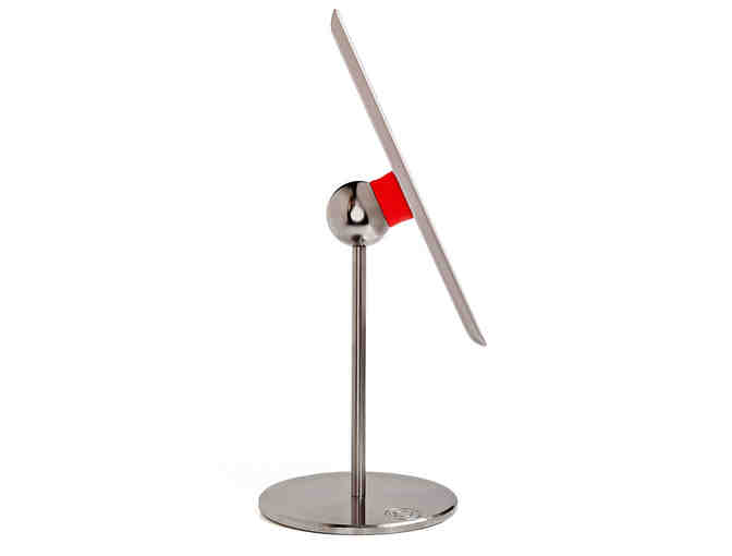 The iOstandâ„¢ is the most functional and flexible iPad stand and tablet mount on the market. It lifts your device up seven inches and rotates in any direction for the perfect viewing angle. This stand will change how you use your iPad or tablet. It is the perfect tablet mount for the kitchen, improves the ergonomics of your desktop or workspace, and looks great anywhere in the home or office. This iOstand has a stainless-steel finish.
