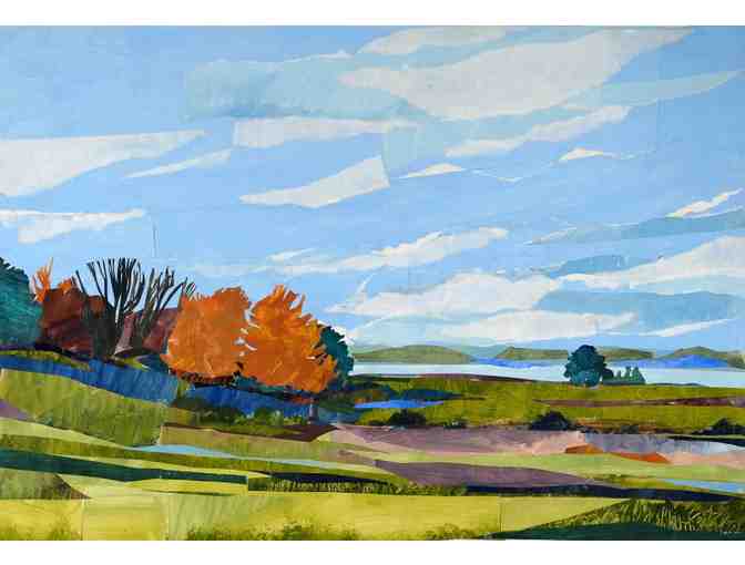 An archival digital print of an original collage, “Gilsland Autumn,” created by Robin Brooks. Robin Brooks lives in Topsham and teaches at the Williams-Cone School. This print is numbered 1 of 50.