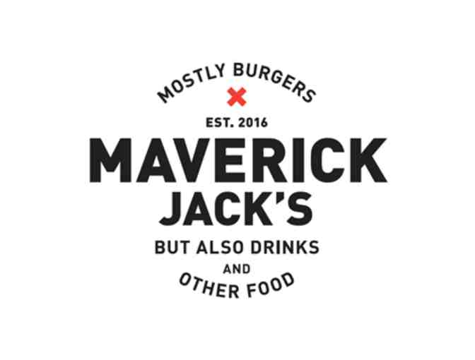 A $50 Gift Card for Maverick Jack's Restaurant in Burlingame. Maverick Jack's. Mostly burgers but also drinks & other foods. This is what we do but there is so much more! We care about our community, team & family. We source our ingredients from like-minded people. We create a place like home to dine. We offer a welcoming hand when you arrive. We bid a fond farewell when you leave.
