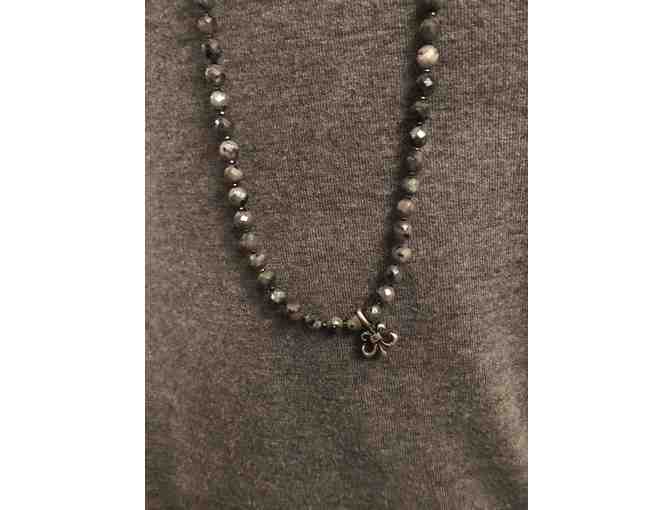 Jennifer Andrea Designs Long Marble Labradorite Fleur de Lis Pendant