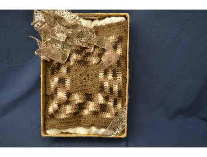 Beautiful brown and white afghan blanket that would make the perfect cozy accessory this winter. Measures 4 1/2 ft. by 5 3/4 ft.