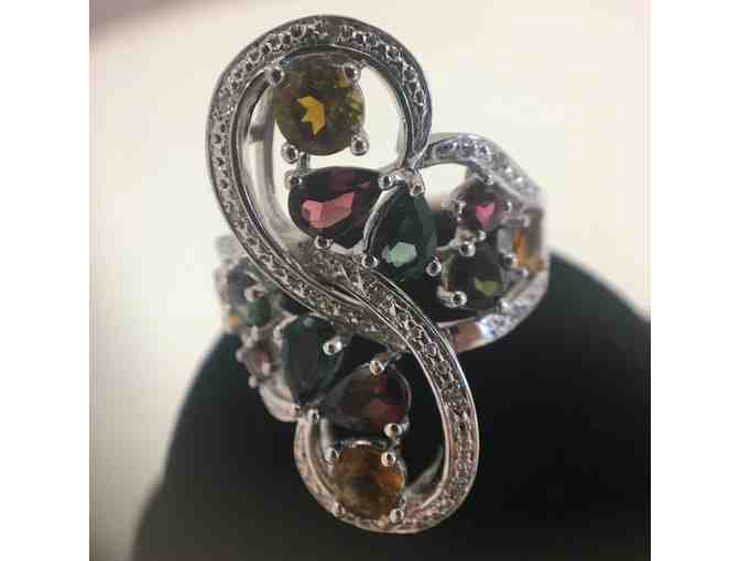 Intricate Multicolor Tourmaline Ring Set in Sterling Silver (size 10)